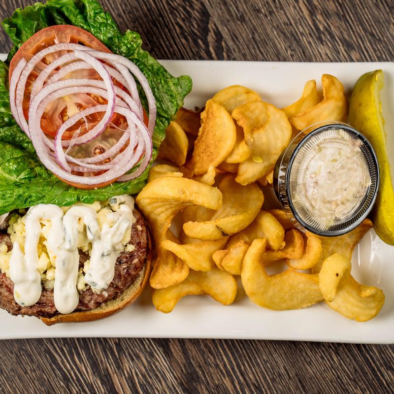 House blend sirloin lightly seasoned and char-grilled; served with French fries, coleslaw and a pickle | Substitute any burger for vegan patty +$2.00 || Substitutions: Onion Rings +$3.00 | Broccoli +$3.00 | Mixed Vegetables +$2.00 | Sweet Potato Fries +$2.00 | Spinach +$3.00 | Asparagus +$4.00